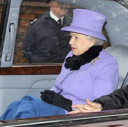 Queen Elizabeth and Prince Philip attended church this morning close to their Sandringham Estate. The Queen wore a lilac chimney hat with pleated detail and matching coat, both designed by her dresser Angela Kelly. This must be one of her favourite outfits as we’ve seen it several times before ( in 2012 she wore it to the unveiling of a Diamond Jubilee monument in October, to Exeter University in May and to Ascot in June).