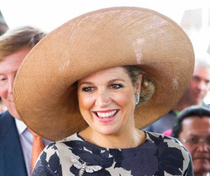 Máxima wore a large natural straw hat with upturned brim (the same one she wore on July 2, 2011 for the wedding of Prince Albert and Princess Charlene of Monaco).