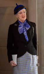 Last Monday (April 1, 2013) Queen Margrethe and Prince Henrik traveled to Herning to take part in the town’s 100th anniversay. Margrethe repeated the purple wool diagonal brimmed hat we first saw at her Ruby Jubilee last year (all the other times she’s worn this hat are listed here). I like this hat and am happy she’s getting a lot of wear out of it but I’m ready to see her in something different. Or maybe, this hat worn with a different dress? Yes- that would freshen this hat up a lot, don’t you think? Maybe a grey suit? Or a tweed coat?