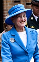 Last Sunday morning, May 26, Queen Margrethe attended Emmauskirken in Frederiksberg to take part in a commemoration service marking the church’s 150th anniversary. For this celebration, she repeated a turquoise hat with a mushroom shaped brim and a smart two-toned blue ribbon around the crown that she has worn numerous times (most recently in early May). I stand by my previous evaluation of this hat as a great one for this queen. I think the colour and brim shape are particularly good on her.