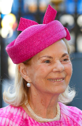 Queen Margrethe attended a church service at Frue Kirke to mark the 70th anniversary of the death of Danish playwright and Lutheran pastor Kaj Munk (who was an important figure during the German occupation of Denmark in WWII). Margrethe repeated her oxblood red pillbox hat with black patent leather trim.