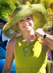 4. Queen Máxima rocks green and even looks good in this acid green, which is very hard to wear! The brimmed hat and the vibrant color worked on this trip to the Caribbean but would have looked out of place in the Netherlands. Horses for courses, as they say. There are other times that she has worn green well. I just wish she would wear more green hats.