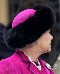 One advantage of Queen Elizabeth’s “black and” hats is that while “and” is meant to go with the outfit; the black always goes with her shoes, purse and gloves. (Of course, it often goes with black in the outfit as well.)