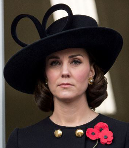 Duchess of Cambridge’s black felt Philip Treacy picture hat with upswept brim and bow worn Nov 12