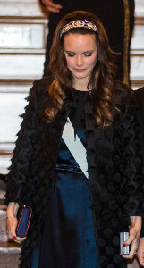 Princess Sofia attended the annual gala at the Swedish Academy Wednesday evening in an intricately beaded headband from US label Jennifer Behr
