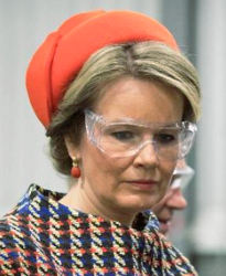 I think an orange hat was the right colour to pair with the strong print on the coat and dress and I adore that Queen Mathilde is brave enough to carry it off. The leaf trim, however, looks unnecessarily clunky and sets the piece off balance for me. If you look at the middle picture above, you’ll also see that the quality of sewing under leaves is really poor. On this occasion- a foreign tour at the end of winter- I think a full pillbox with closed crown and some type of embellishment might have been a better option.