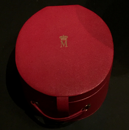 Not only ’grown-up’ hats are on display. There is a special place for the type of hat that almost every Danish high school student shares with the Queen: the studenterhat worn during graduation festivities. The Queen has two: a Danish one, and one from the Faeroe Islands, with an extra tassle, and a beautifully monogrammed red-leather hatbox to go with them.