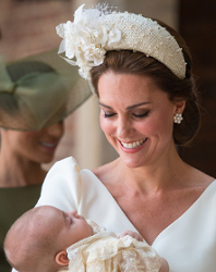 Duchess of Cambridge’s cream straw bandeau with pearls, flowers & tulle by Jane Taylor worn July 9