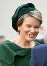 Queen Mathilde’s green folded felt calot by Fabienne Delvigne worn in Austria on Oct 1