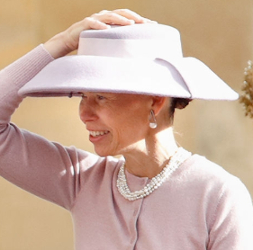 Lady Sarah Chatto in a pale pink felt hat with cartwheel brim by Stephen Jones worn Oct 12