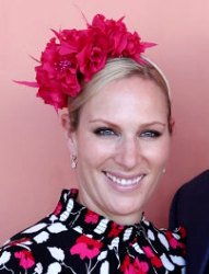 Zara Tindall’s fuchsia silk floral headpiece by Meg Rafter worn in Australia January 12