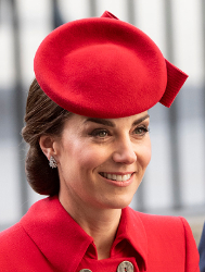 Duchess of Cambridge’s red felt saucer with bow worn March 11