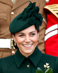 Duchess of Cambridge’s green felt triangular beret with bow flowers from Lock & Co. worn Mar 17