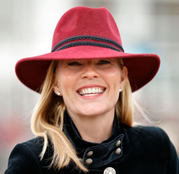 Zara Tindall’s magenta felt percher with oversize flower by The Cotswold Milliner worn Mar 17