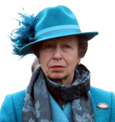 Princess Anne’s turquoise felt fedora with layered hatband and feathers worn March 15