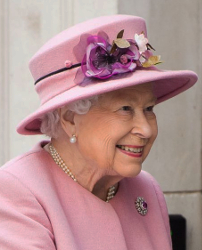 Queen Elizabeth’s dusty pink hat with silk flowers by Rachel Trevor Morgan worn March 19