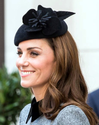 Duchess of Cambridge’s black felt Lock & Co. beret with floral and feather trim worn March 19