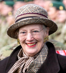 Queen Margrethe’s houndstooth check hat with layered chocolate, blush & burgundy hatband worn Mar 31