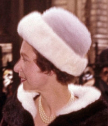 I also meant to say that not all of these photographs were taken at the Maundy Thursday service- a few showed much better views of the hats at other outings so made sense to use. Interestingly, in this pre-digital age, hat repeats were often closer in time than they are now! The 1963 hat shown above was photographed March 28, 1963 on the Queen’s arrival back from a trip to New Zealand and Australia and repeated April 4 for the Maundy Thursday service. We seldom see such quick repeats today.