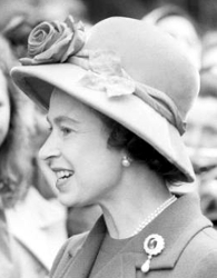 My thanks to Jimbo for hunting down the 1978 photo! This series shows another interesting evolution in the Queen’s hat shapes- the voluminous turbans of the late 1960s and 1970s are intermixed with equally inflated fabric tam ‘o shanters. The early 1980s sees a series of embellished pillboxes with two brimmed designs: the lovely floral trimmed fedora of 1984 and the low-crowned cowgirl design (with veil!) in 1983 . It’s simply a colourful bunch that makes me smile!