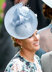 Zara Tindall’s pale blue saucer with flowers and twists by Juliette Botterill worn on Day 1