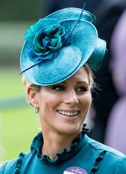 Zara Tindall’s deep teal saucer with ruffled back, flower and quill trim by Juliette Botterill worn on Day 3
