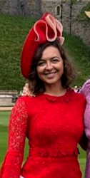 Zenouska Mowatt in a red straw Jane Taylor Saucer with layered crin ruffle worn May 18