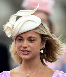 Lady Amelia Windsor’s cream straw Philip Treacy teardrop percher with knotted flying bow worn May 18