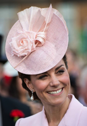 Duchess of Cambridge’s pink saucer with rose and feather by Juliette Botterill worn May 21