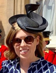 Princess Beatrice’s black button percher with curling crescent twists by Annabel Allen worn June 1