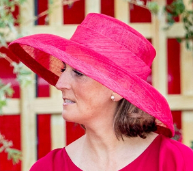 Princess Claire’s raspberry straw picture hat with mushroom brim by Amélie D’Hooghvorst worn July 21
