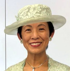 Princess Hisako’s pale celery green hat with lace crown and crin brim worn August 17
