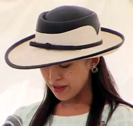 Princess Tsuguko’s cream hat with graphic divided black crown and trim worn on August 10