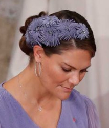 Crown Princess Victoria’s headpiece of folded lilac ribbon flowers by Örjan Jackobsson worn August 31