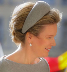 Queen Mathilde’s grey bandeau by Amélie d’Hooghvorst worn February 17