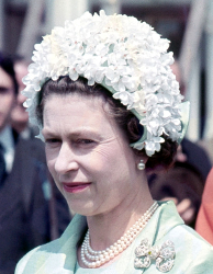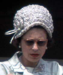 Yesterday we looked at Queen Elizabeth’s hats at the Epsom Races from the late 1940s until 1964; today, we continue this sweeping retrospective with her toppers (and many turbans!) through the end of the 1970s. Special thanks to Jimbo for his assistance finding most of these photos.