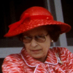 After sweeping through Queen Elizabeth’s hats worn to the Epsom Races from the late 1940s until 19643 and from 1965 through the end of the 1970s, we turn our attention today to her colourful hats of the 1980s and 1990s. Again, my thanks to reader Jimbo for his assistance with photo research.