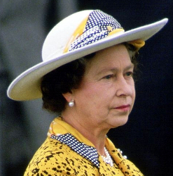 June 11, 1994: Trooping the Colours (yellow straw hat, navy coat)