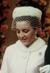 Princess Irene wore a headpiece of large deep pink silk flowers. Princess Margriet wore a white veiled pillbox, the fur hat linking with the collar and cuffs on her blush silk gown and coat.