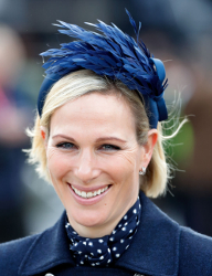 Queen Elizabeth’s blue and grey felt hat sidesweep with looped bow and feathers by Rachel Trevor Morgan worn Mar 10