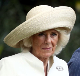 Duchess of Cornwall in a textured natural straw hat with sidesweep upturned brim by Philip Treacy worn Nov 18