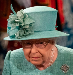 Queen Elizabeth’ turquoise felt hat with teal velvet stitched leaves by Angela Kelly/Stella McLaren worn Nov 28
