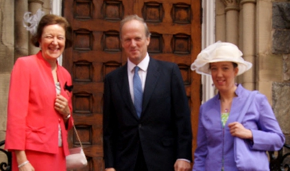 Hereditary Grand Duchess Stéphanie topped a vibrant floral dress with a wheat coloured sinamay hat with gently raised brim on one side. The hat is simply trimmed with a wide hatband that loops into an interesting large abstract bow.