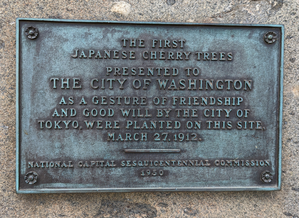 The cherry blossoms planted around the Tidal Basin were a gift from Mayor Ozaki Yukio of Tokyo in 1912. In 1910, the mayor was part of a Japanese delegation that visited DC, led by Prince Tokugawa Iesato. This trip was linked with the gifting of 2,000 cherry trees, but they unfortunately arrived diseased and had to be destroyed. Dismayed at this, a second gift of 3,020 saplings were sent in 1912; the original idea of having cherry trees originated with Eliza Ruhamah Scidmore after she had visited Japan in 1885 and had experienced the beauty of their blossoming herself. On 27 March 1912, US First Lady Helen Herron Taft and Viscountess Chinda Iwa, wife of the Japanese Ambassador to the US (seen in a floral Edwardian hat with veiling in this photo sometime around 1920), planted the first trees in a small ceremony that unfortunately seems to have no surviving photographs I could find, if any were taken at all.