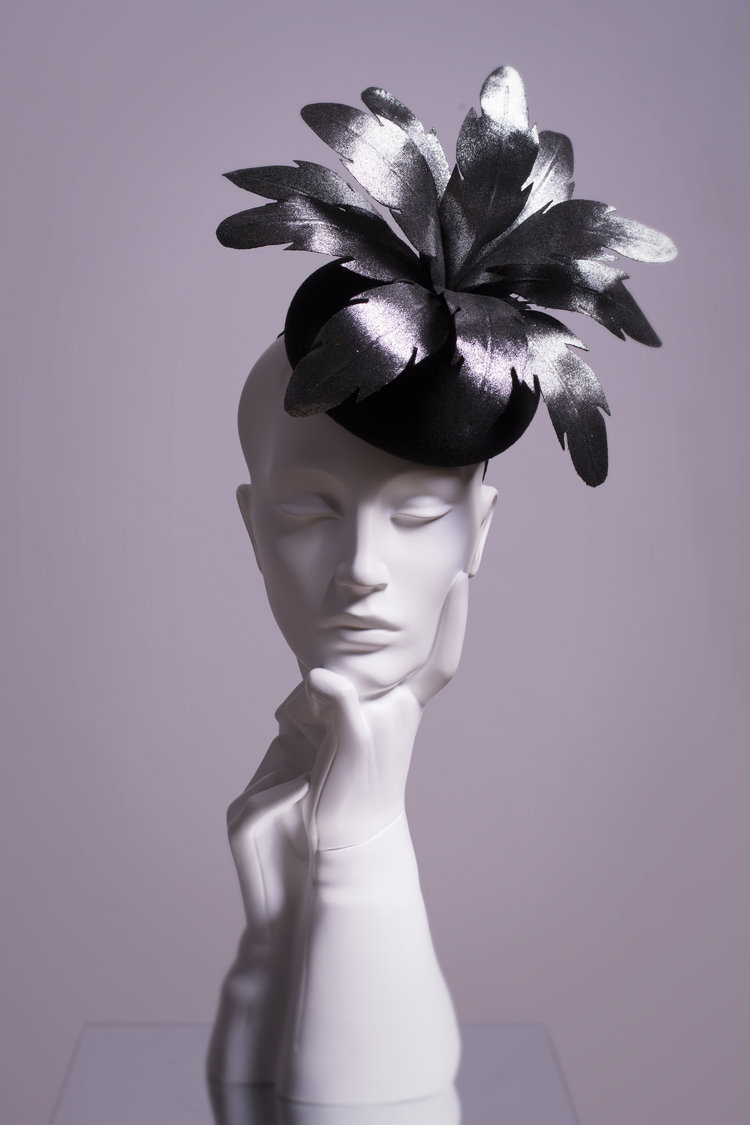 Crown Princess Mary repeated a design with deep navy straw button base is covered with large silk calla lily flowers and wired leaves that beautifully curve around her face.