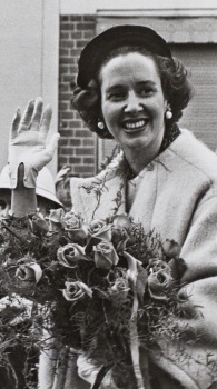 The engaged couple, waving from the balcony of Brussels City Hall, September 25, 1960